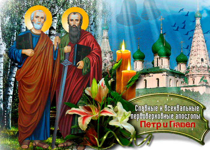 Картинка гиф Петров день С днём св. Петра и Павла - Желаю удачи и мира Сегодня Петров день, поздравляю вас с этим праздником Прекрасная открытка Петров день Праздничная картинка Петров день С днём святых Петра и Павла - Добра и света вам С праздником святых апостолов Петра и Павла С Праздником Петра и Павла С праздником святых апостолов Петра и Павла Со светлым праздником Петра и Павла поздравл Прекрасная открытка Петров день С праздником Петра и Павла поздравляю
